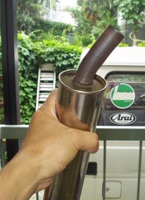 いやはや実際使ってみるとほとんどその使用感は特工と変わりません。新品シールをインナーチューブに通し、その上から今までハマっていた古シールを宛がい、この似非特工を上からエンヤコラっ!と打ち込むのです。上下運動の際、インナーに傷付く恐れがある場合は予め金具内側にガムテープなどを貼ってから行なえば問題はないでしょう。 |