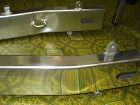 私が施したここまでの作業手順としましては、結構粗目(#80位)のペーパーで表面のアルマイトをひたすら擦り落とします。 |