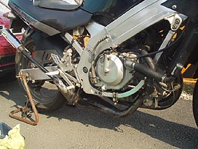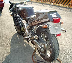 ・・・今日はついにアンダーカウルまで装着(仮)をしてみました。 やっとバイクらしくなってきました。つか、おぉ、このバイクはガンマだったんだーと恐らく認知してくれたことでしょう(笑) |