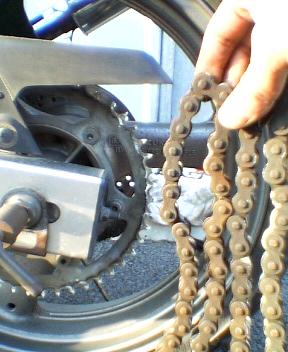 サビサビガビガビのDチェーンをどうせ交換するのだからといよいよ切ってしまいました。 H型のナンカイ製チェーンカッター(かしめも可)を使用しているのですが、やはり強度的になんとなく不安がありますな。H型のカッター本体がピンを抜くために締めこんでいくと歪んでいってしまってます。まぁ使用頻度も低い工具ですし、ましてや6千円弱とお安いのでよしとしましょう。 |